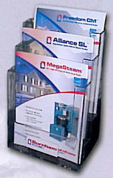 Free standing three clear styrene 1-1/2" pockets hold 8-1/2"x11" literature.