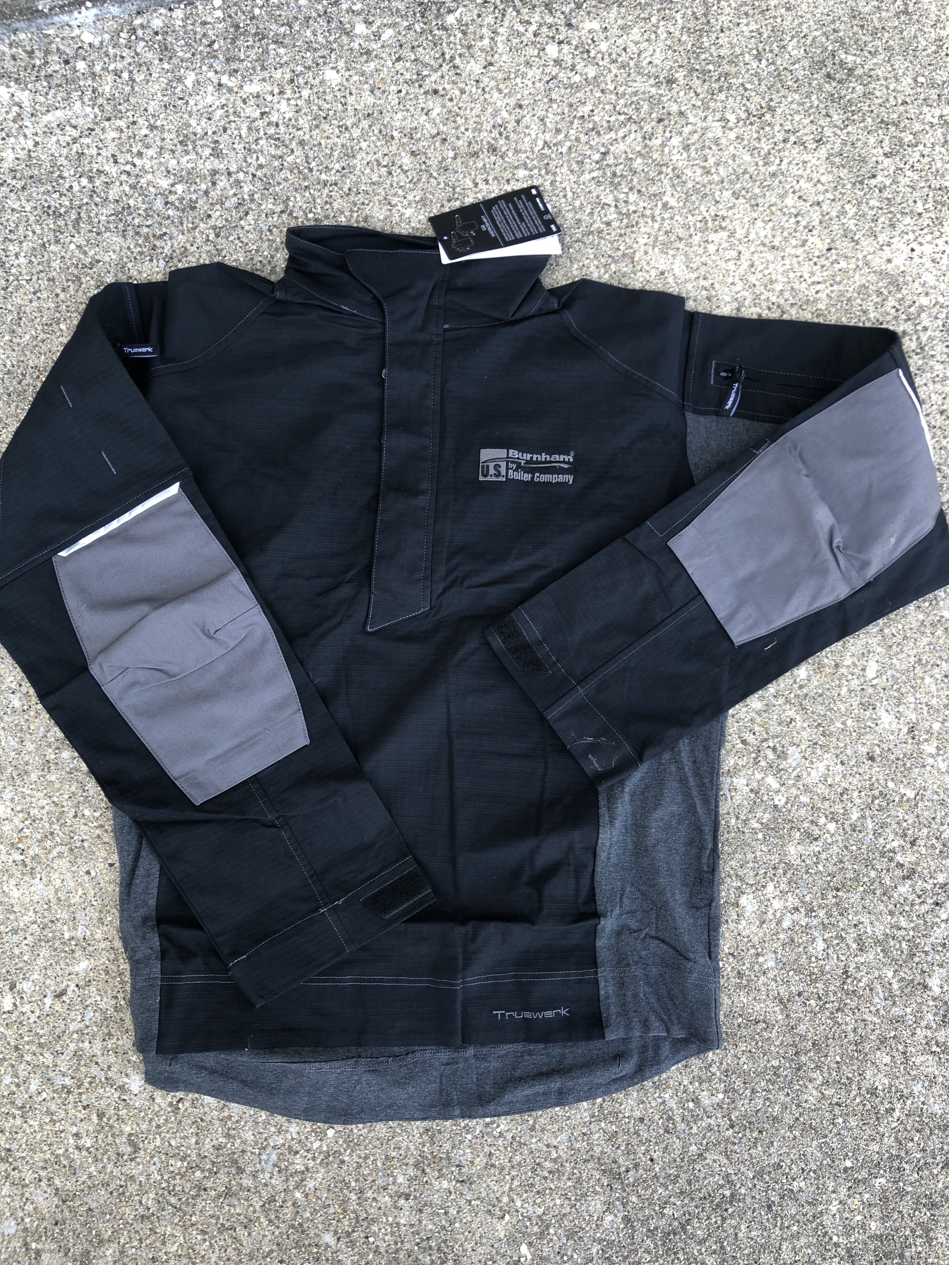 These shirts are designed with three different layers: stretch-woven fabric on the front, sleeves, shoulders, and collar; lightweight breathable cotton knit on the back and sides; and a stretch-woven fabric on the elbow area. The G2 WerkShirt is equipped with a high neck with Velcro cuff to protect from hazards; an articulated elbow with slot for bump pads; shirttail detents to prevent untucking and harness detachment; reflective portions on the arms; and a deep front opening that can be zipped or snapped.